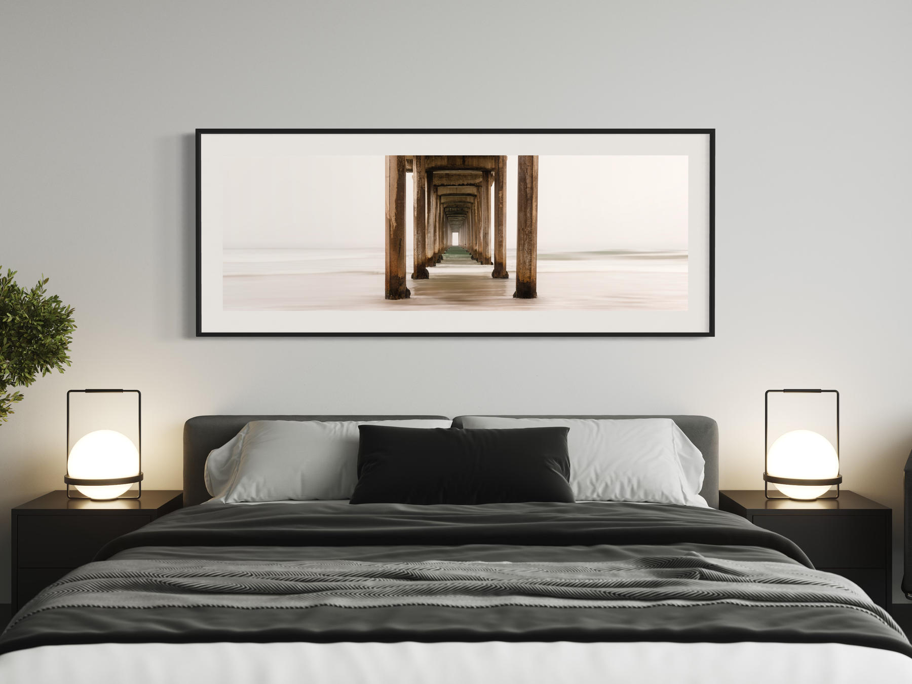 Bring the beauty of Scripts Pier, San Diego, into your space with this high-resolution panoramic fine art print. Perfect for coastal decor, beach lovers, or a unique gift, this serene ocean photography piece adds a modern, minimalist touch to any home.
